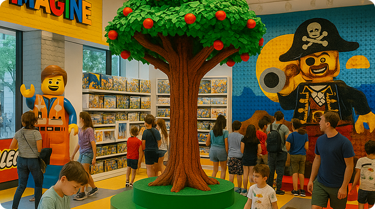 Or think LEGO’s New York flagship, where families co-create massive brick mosaics displayed instantly on giant screens. The magic isn’t in the purchase, it’s in the pride of seeing your creation come alive in-store.